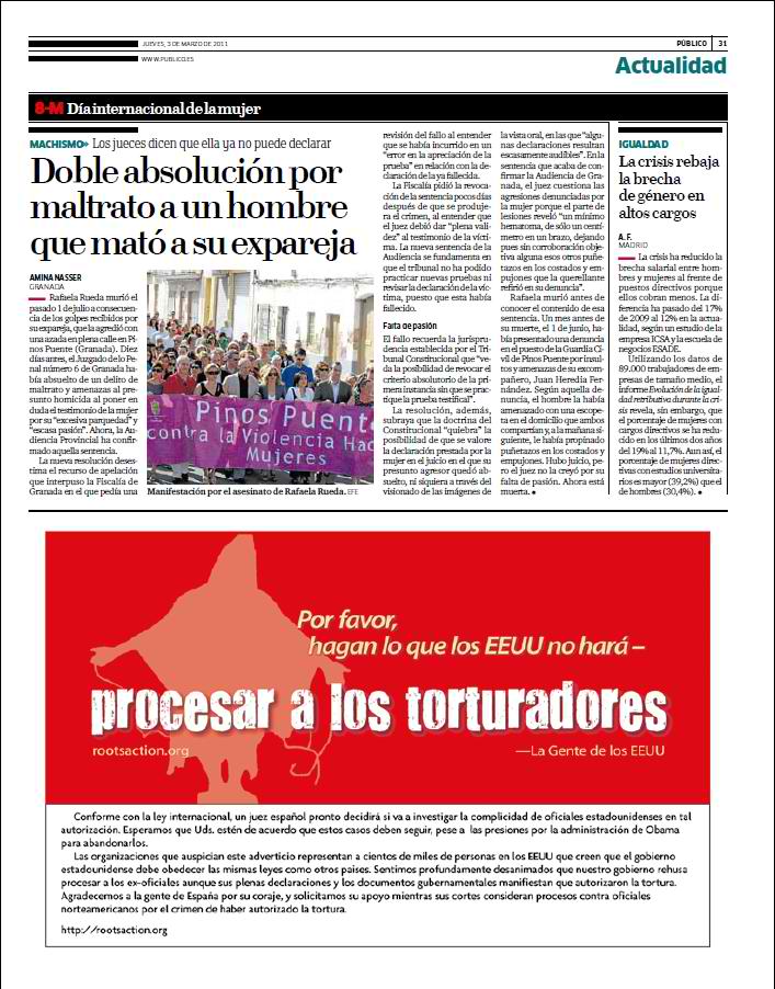 tortura. Agradecernos a la gente de España por su coraje, y solicitamos su apoyo