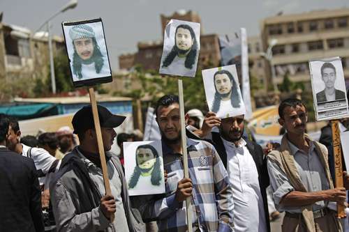 En Saná, capital de Yemen, familiares de detenidos se manifestaron este lunes