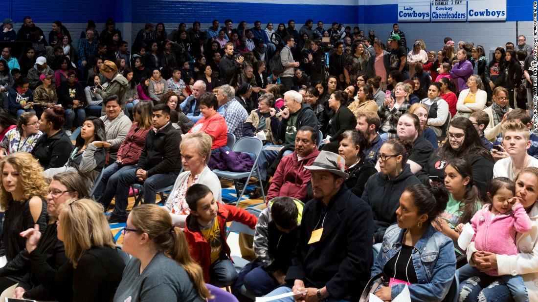 Un grupo de personas se reunió en el gimnasio de la escuela primaria Hillcrest en