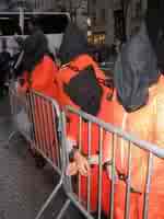 humanidad", mientras otros se arrodillaron en monos anaranjados y cadenas. Se