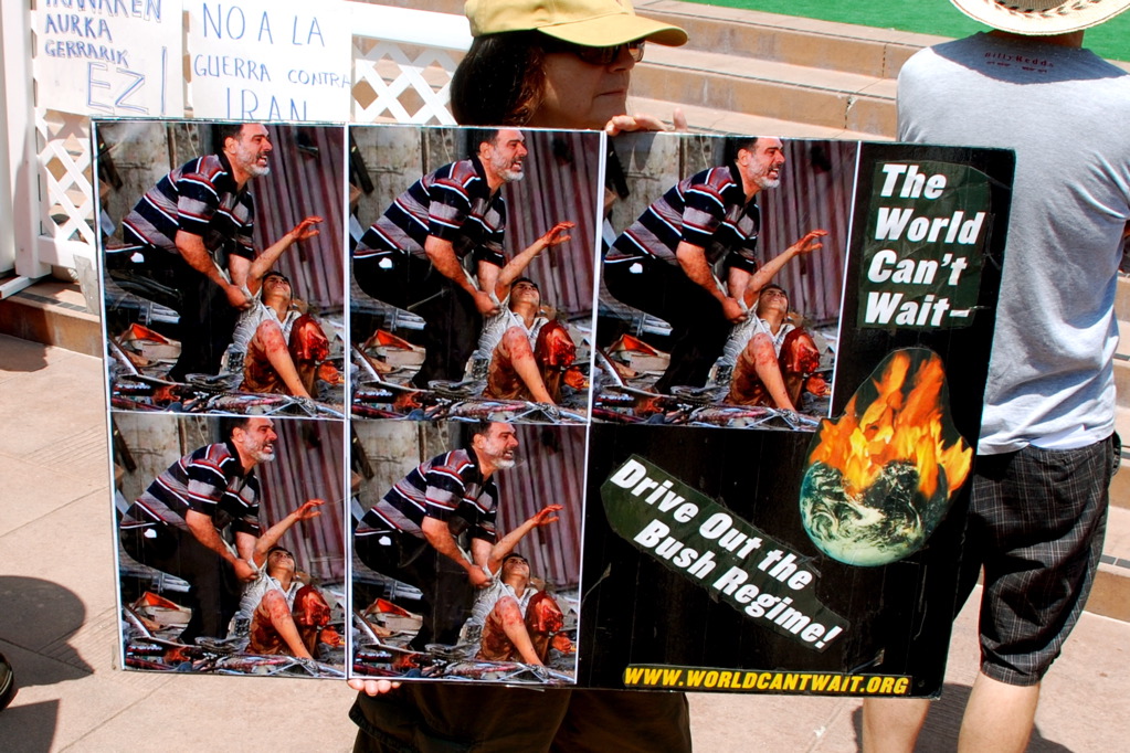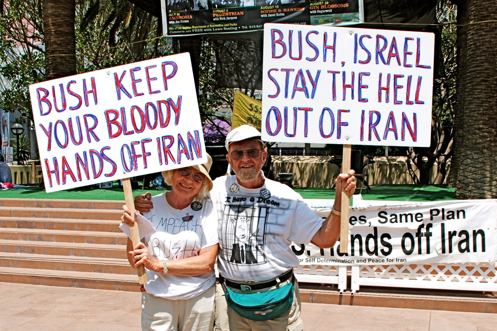 en farsi, español, y inglés que demandaron “Fuera los criminales de guerra del