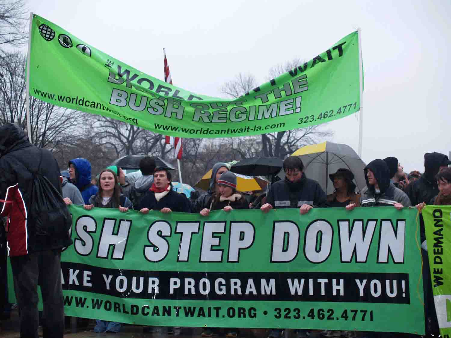 lo largo de la caminata a la Casa Blanca para demandar que ¡Bush se largue! Esta