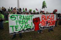 repugnancia para el gobierno de Bush y coreando "¡Levántate pueblo! ¡Lárgate