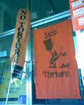 de la tortura llevaba un cartel que decía "Alto a la tortura" en que figuraban