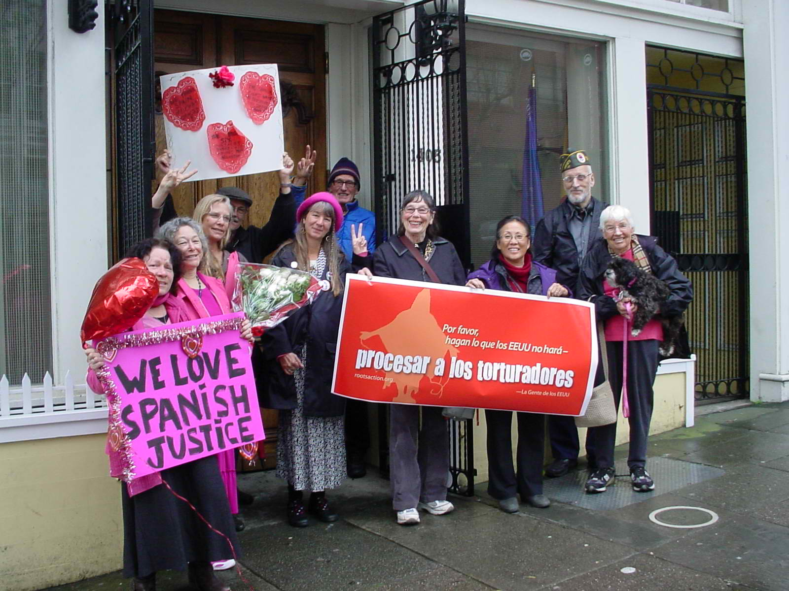 decía: "Gracias, España", explicamos que estábamos allí para expresar nuestro