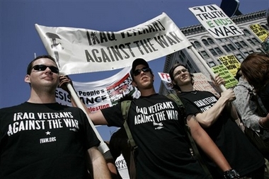 jóvenes, veteranos de la actual guerra contra Irak y de otras guerras, y mucha