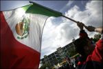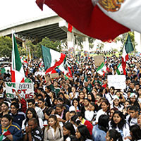 banderas mexicanas, estadounidenses y de otros países, y marcharon coreando