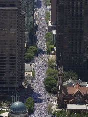 gritaban ya una hora antes del comienzo de la marcha los miles de neoyorquinos