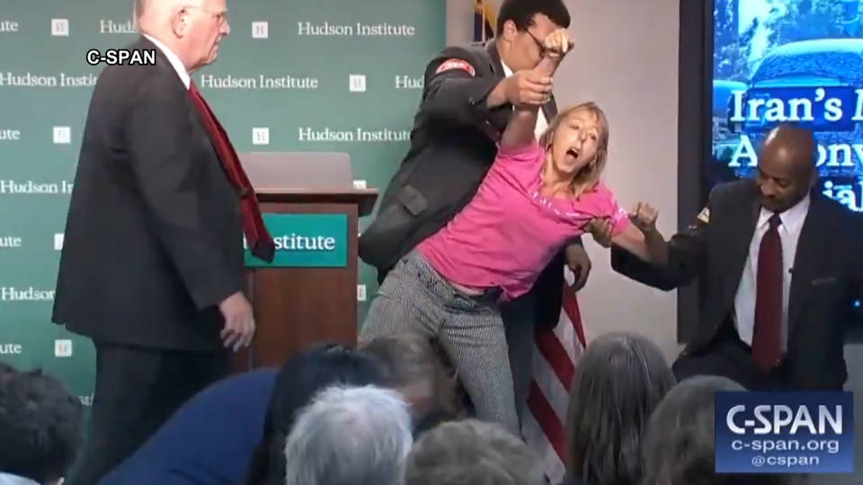 La cofundadora de la agrupación CodePink, Medea Benjamin, interrumpió un