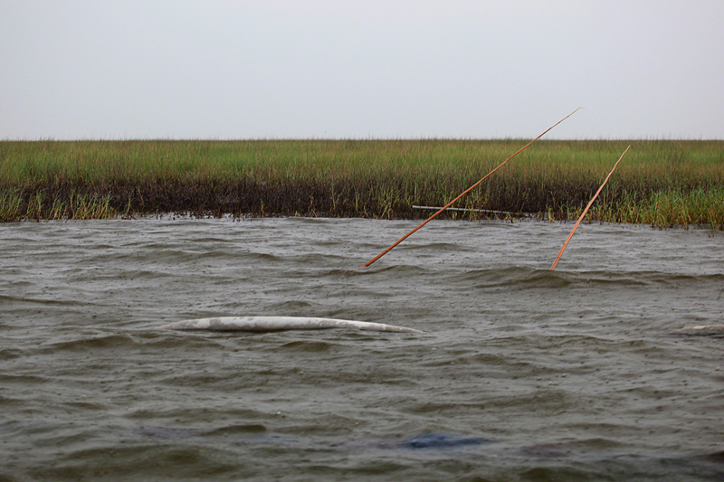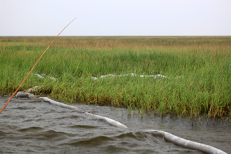 tierra, zonas de las marismas anegadas de petroleo la cuales están muertas.