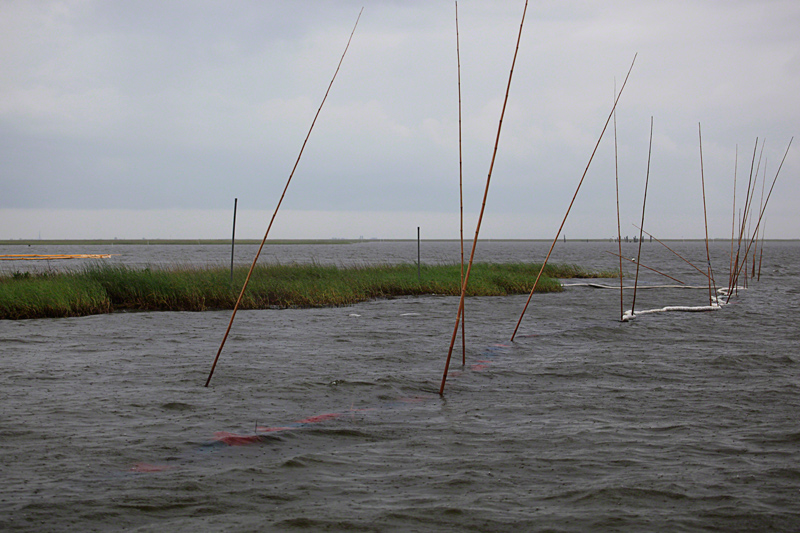 la barrera flotante de BP. “Puede que queden cuatro o cinco pescando”, contesta