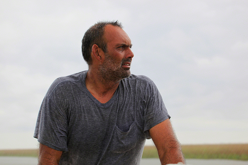 Tras ver sus fotos de las marismas afectadas por el petróleo, montamos en su