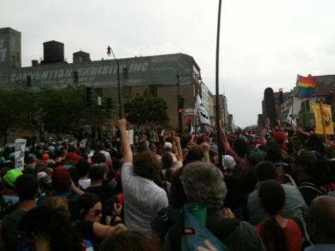 Después de llegar a la manifestación del domingo, la policía de Chicago nos paró inmediatamente.