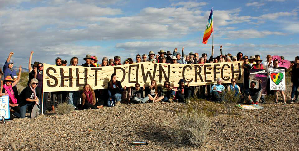 Durante las protestas en la base de Creech, Blomé y los miembros de su grupo entablaban