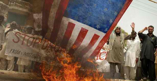 Paquistaníes queman una bandera de EE.UU. en Multan, el 25 de mayo para