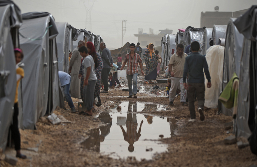 Refugiados sirios esperando para cruzar la frontera y entrar en Turquía. 15