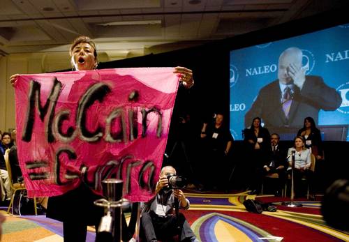 Manifestaciones contra McCain y la guerra en Irak en reunión de latinos