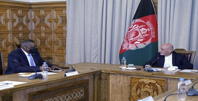 El El secretario de Defensa Lloyd Austin con el líder afgano