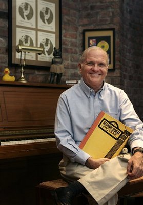 El compositor y productor Christopher Cerf posa frente a su piano donde