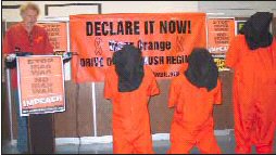 George W. Bush and Vice President Dick Cheney by wearing orange bandanas and