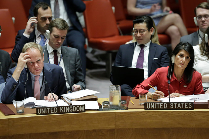 la ONU, y Nikki Haley, embajadora estadounidense ante las Naciones Unidas, en