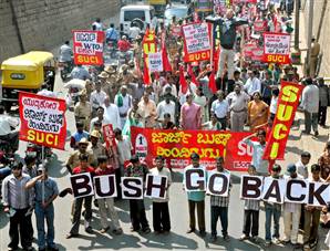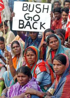 Bush, en su visita a India, se topó con protestas masivas - EL MUNDO NO PUEDE ESPERAR a que saquemos al gobierno de Bush.