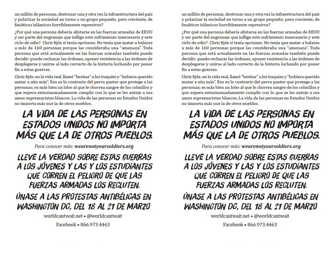 Volante: No más guerra contra Irak, Afganistán,