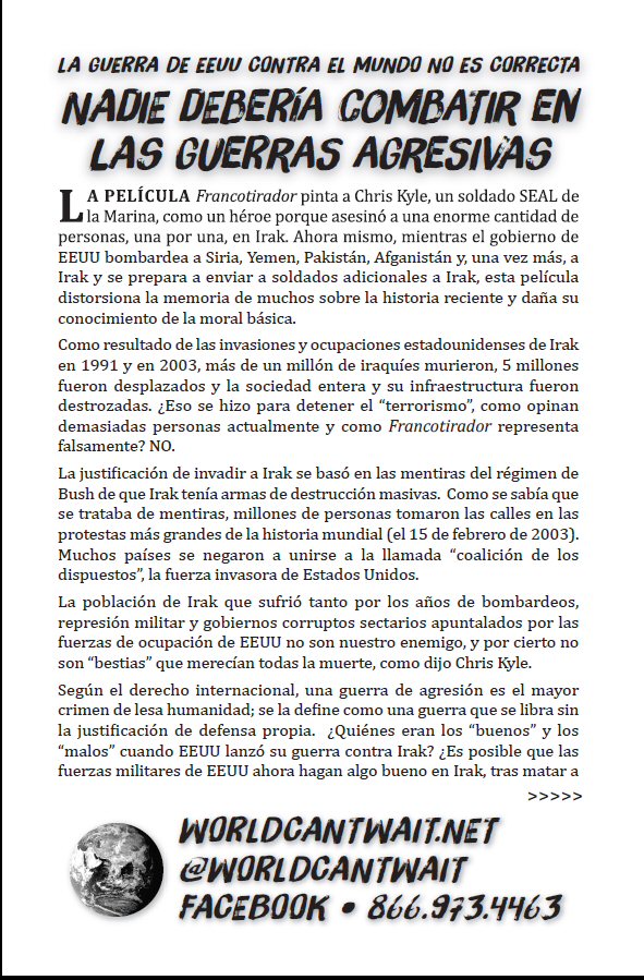 La guerra de EEUU contra el mundo no es correcta. Nadie debería
