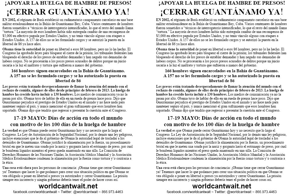 ¡Alto la tortura! ¡Cerrar Guantánamo! ¡Fin a los