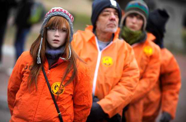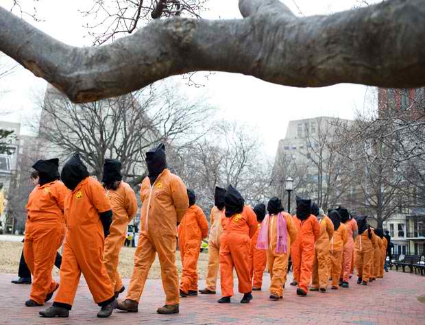 Guantánamo, desfilaron hoy vestidos con monos naranjas ante la Casa Blanca para