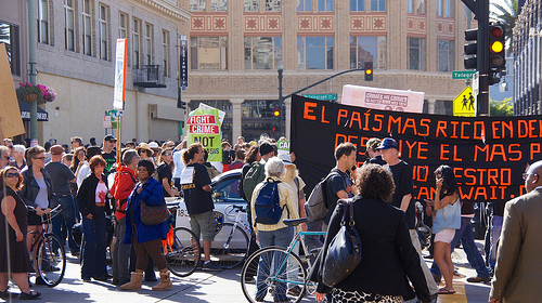 una gran manifestación de protestantes en Oakland. El Mundo No Puede Esperar,
