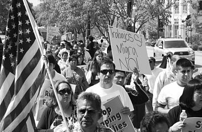 que repetía consignas en español como "Legalización", "Obama, escucha, estamos