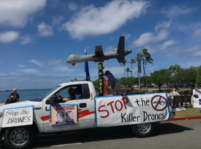 guerra de los aviones no tripulados) junto con los manifestantes.