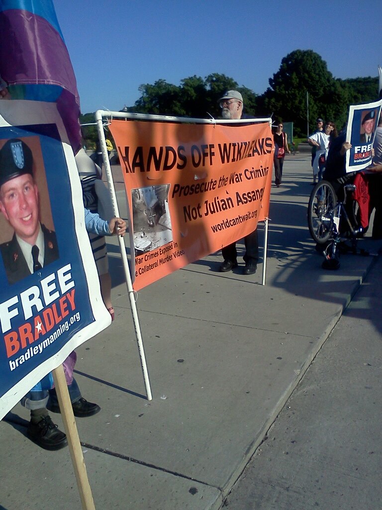 para mostrar el apoyo a Bradley Manning y el otro pidiendo el final de la