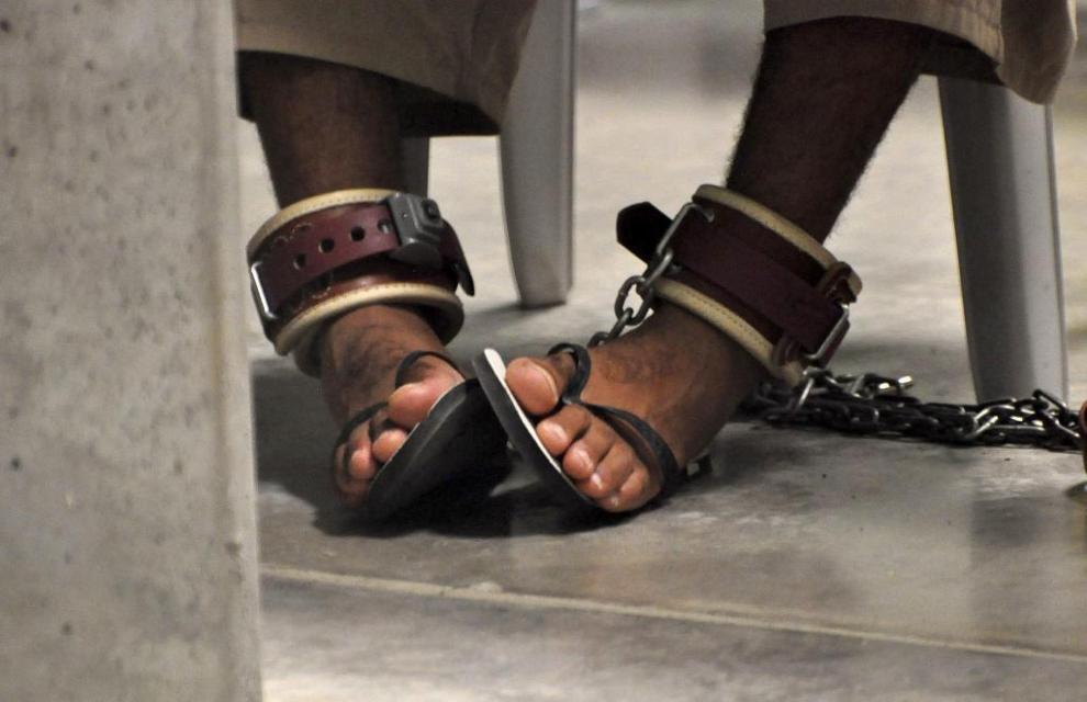 Shaker Aamer, se percató que las zapatillas estaban remendadas con cinta plástica. Otro