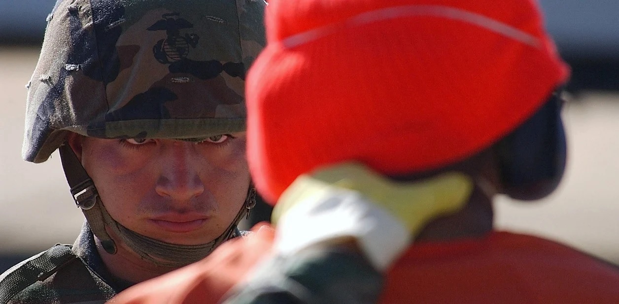 El prisionero con cinta adhesiva es el mismo hombre que se ve en una foto de los infantes de marina