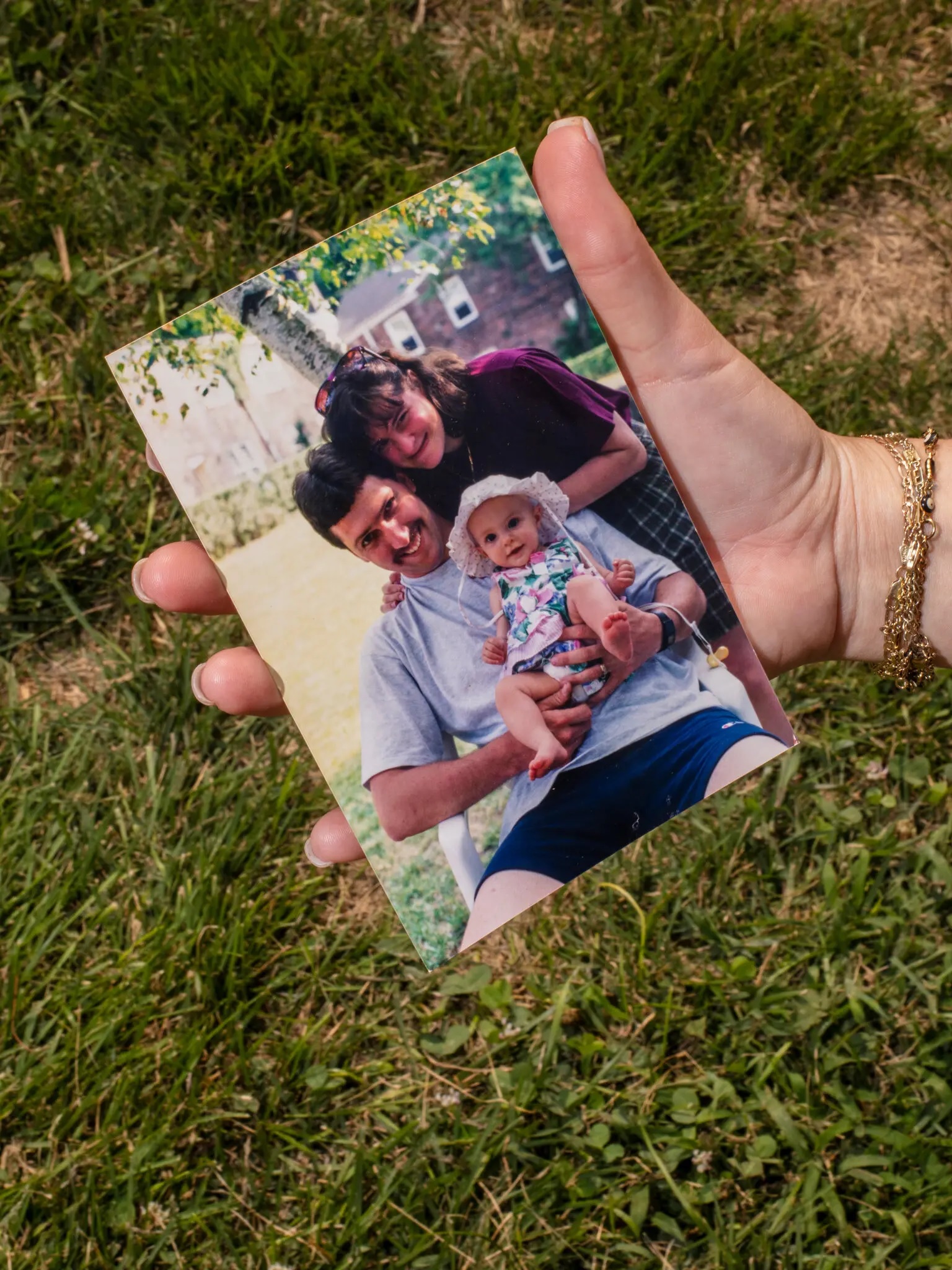 La Sra. Miller sostiene una fotografía en la que aparece de niña con su padre, un bombero que murió en el