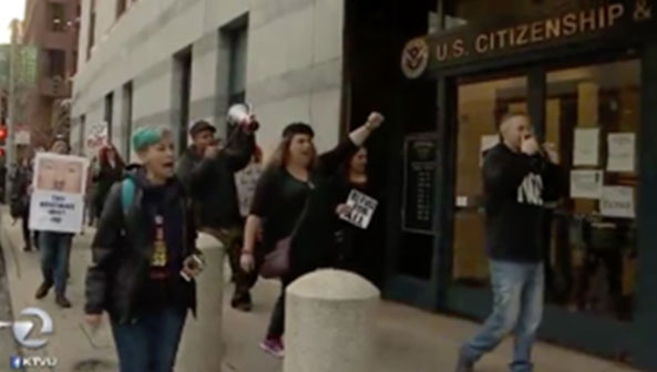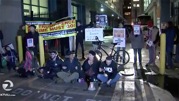 edificio de ICE en San Francisco. Entre otras actividades, han bloqueado las