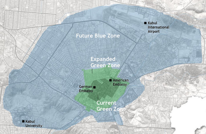 verde de Kabul trazadas nuevamente para abarcar embajadas de Occidente, ministerios
