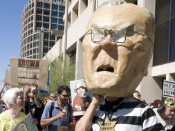 Un activista disfrazado de Joe Arpaio protesta en Phoenix. (FOTO: