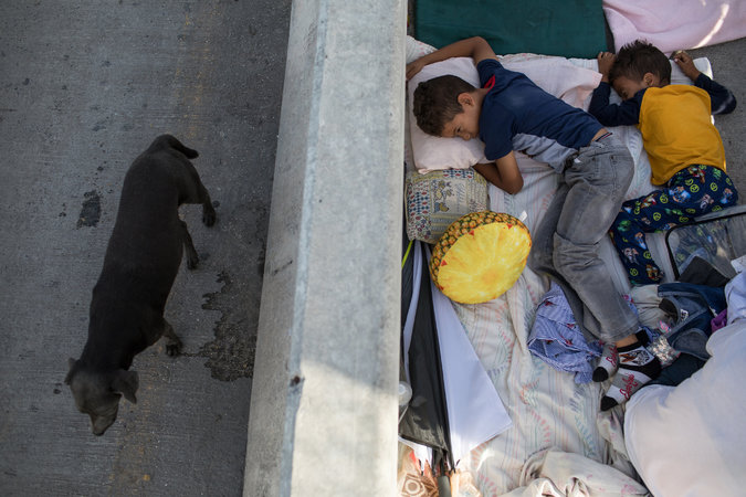 Niños hondureños pernoctan en un puente de cruce