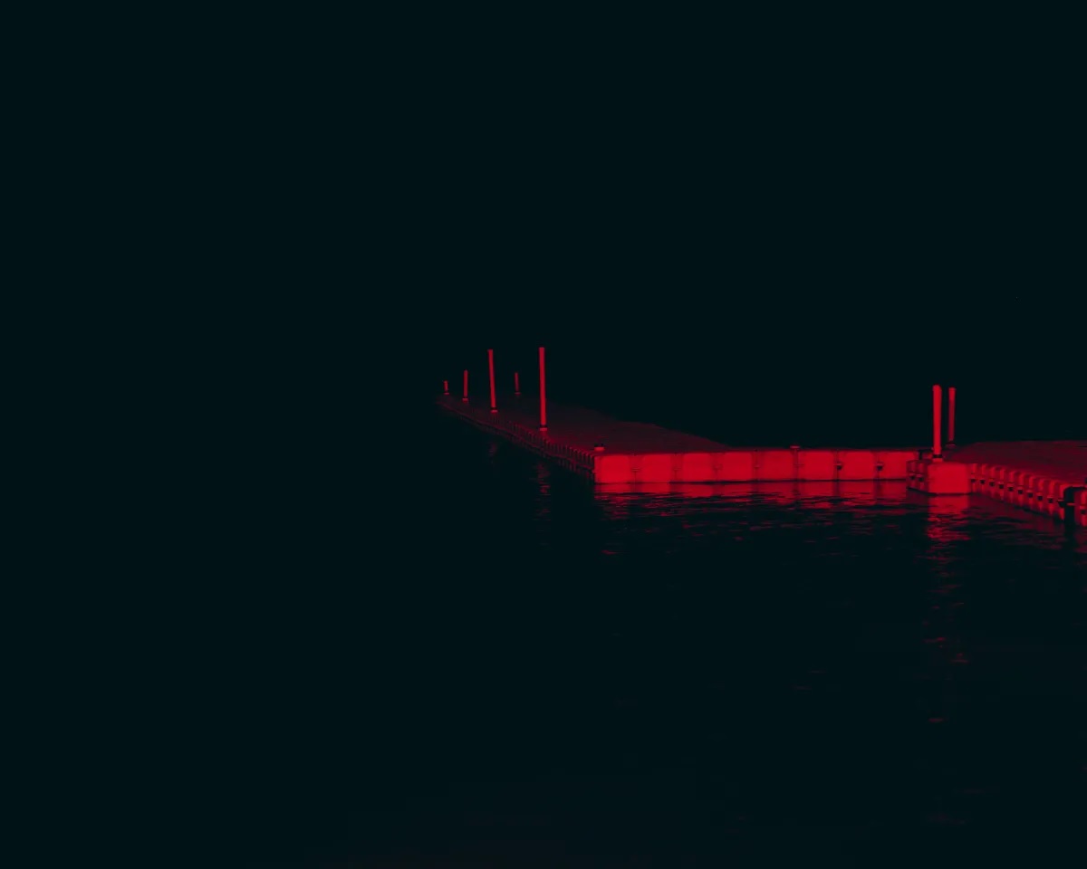 al negro mientras el inquietante resplandor rojo de los focos del muelle se