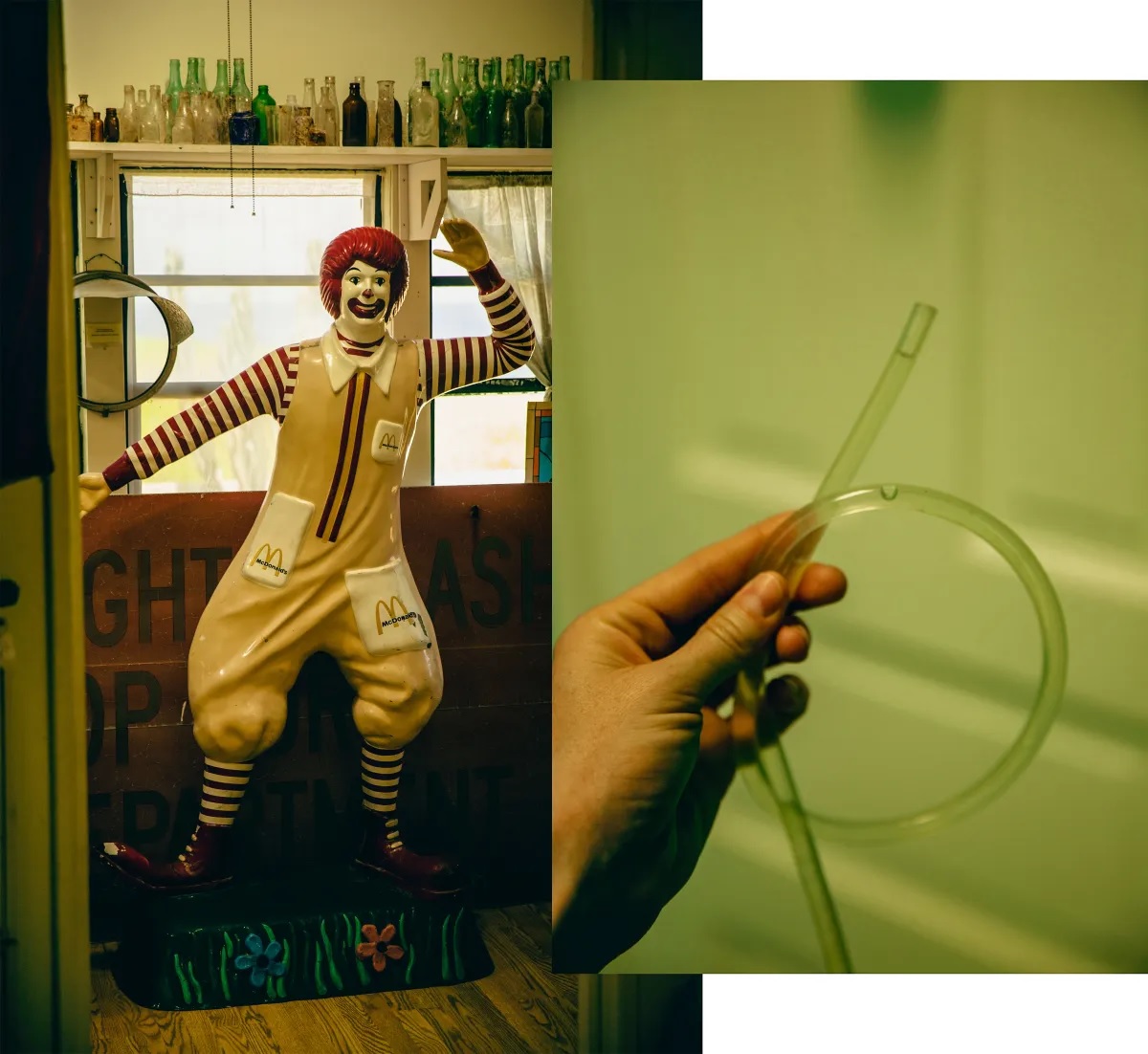 Ronald McDonald en el museo del faro de Guantánamo. Derecha: Un tubo de