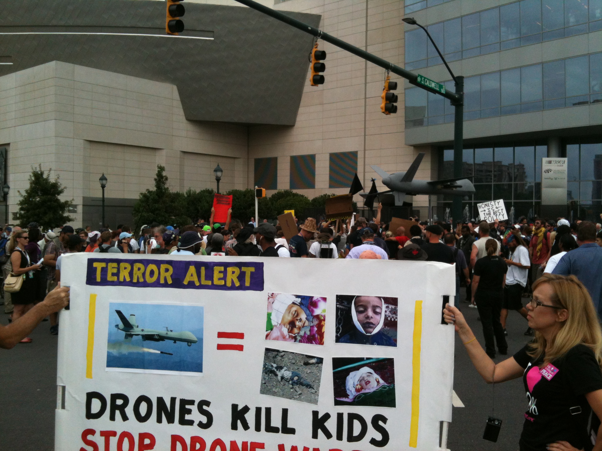 “Cuando los aviones no tripulados vienen, los ninos mueren” y “Obama y Romney