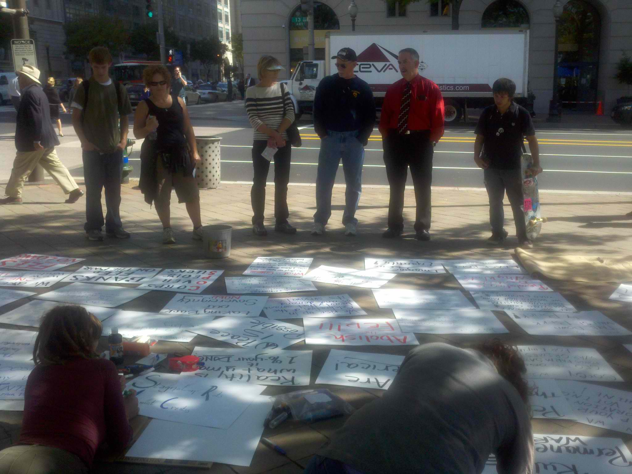 firmas" donde la gente podía diseñar su propio cartel de protesta.