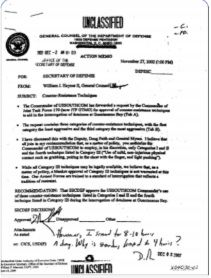 Ghraib en Irak. Firmó un memo el 2 de diciembre del 2002 autorizando