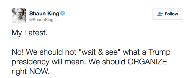 significará la presidencia de Trump. Debemos organizarnos ahora mismo.”