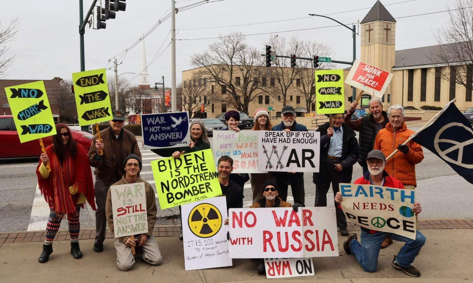 Un saludo a nuestros amigos de Fayetteville, Arkansas, que protestan regularmente contra la guerra de