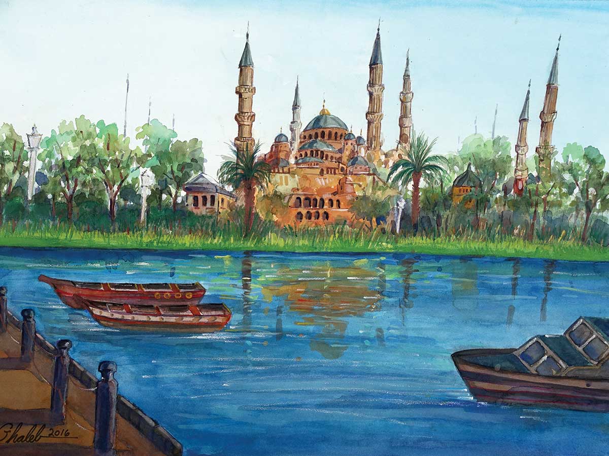 Ghaleb Al-Bihani, Sin título (Paisaje con Mezquita Azul), 2016