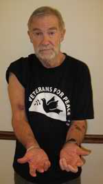 llevaba puesta una camiseta de Veteranos por la Paz.